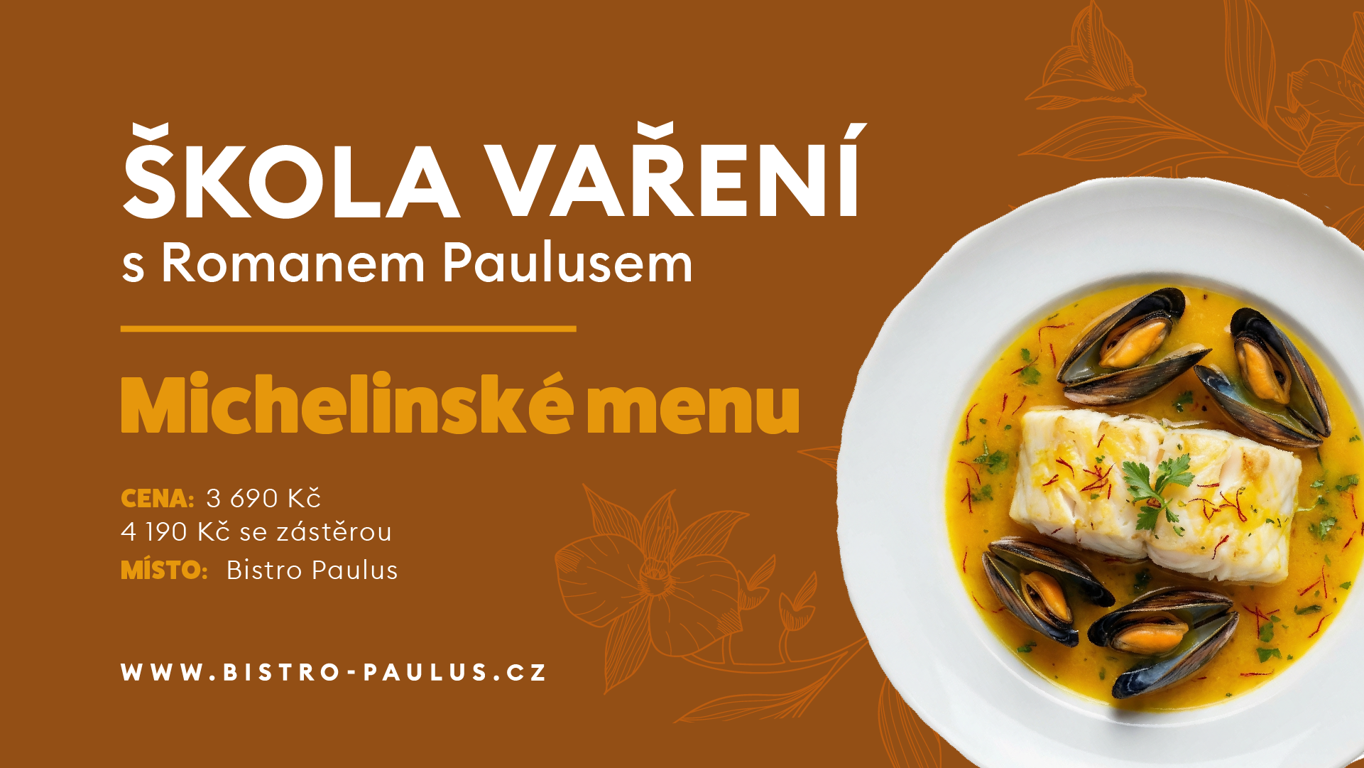 V kurzu se pod vedením michelinského šéfa Romana Pauluse naučíte připravit výtečné 5-chodové menu. Kromě příjemně strávených chvil u plotny si odnesete i spoustu užitečných praktických znalostí, krásných zážitků, sadu receptů a podepsaný certifikát.